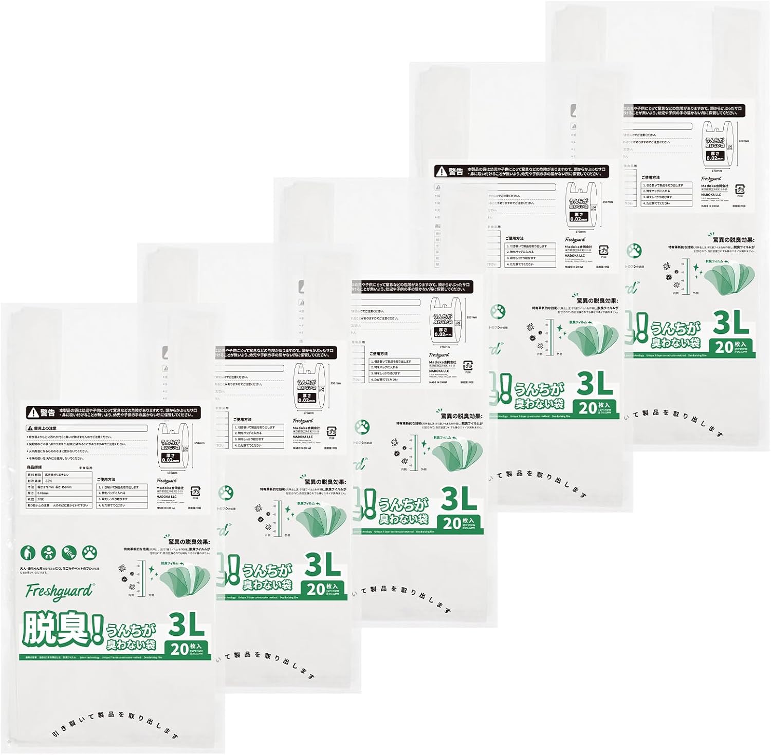 Freshguard 防臭袋 手付き 8L 横幅22㎝×縦45㎝×厚み0.02mm 生ゴミが臭わない袋 消臭袋 生ゴミ処理袋 フィルム構造 長時間防臭 匂わない袋 徹底消臭 車内 キッチン用品 ポリ袋 ゴミ袋(ホワイト、8L/50枚)