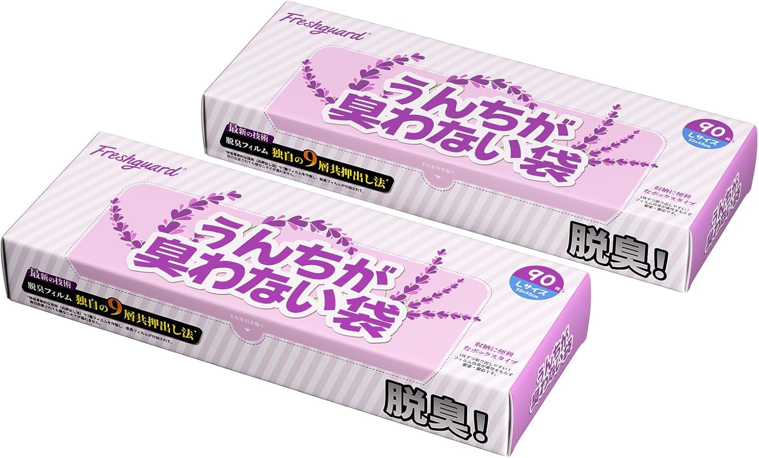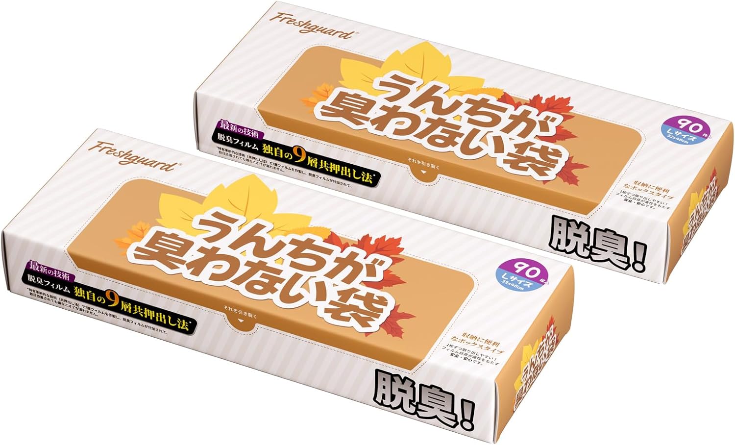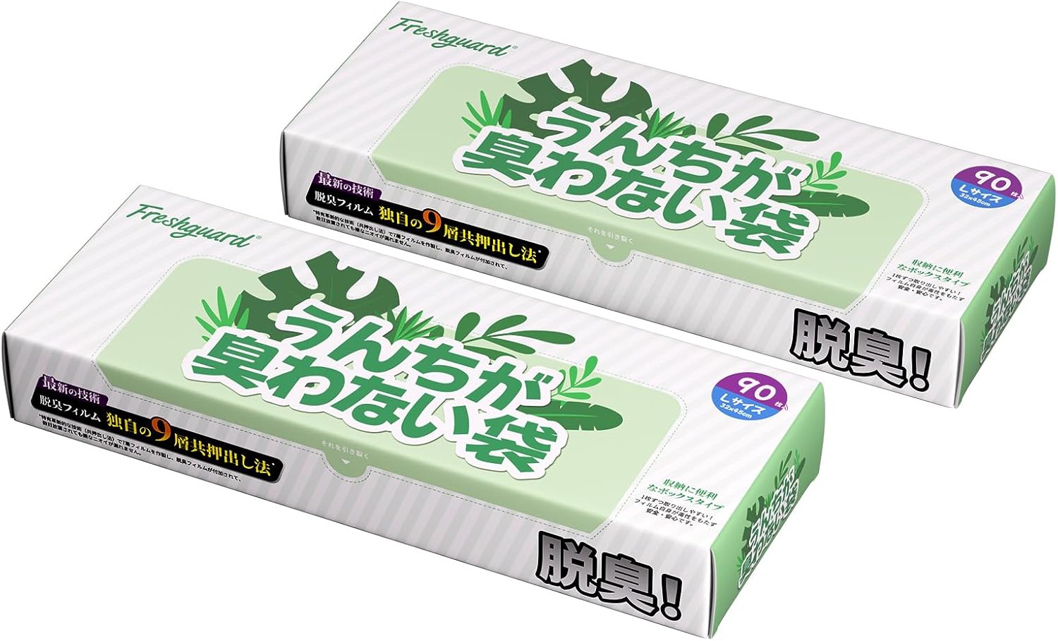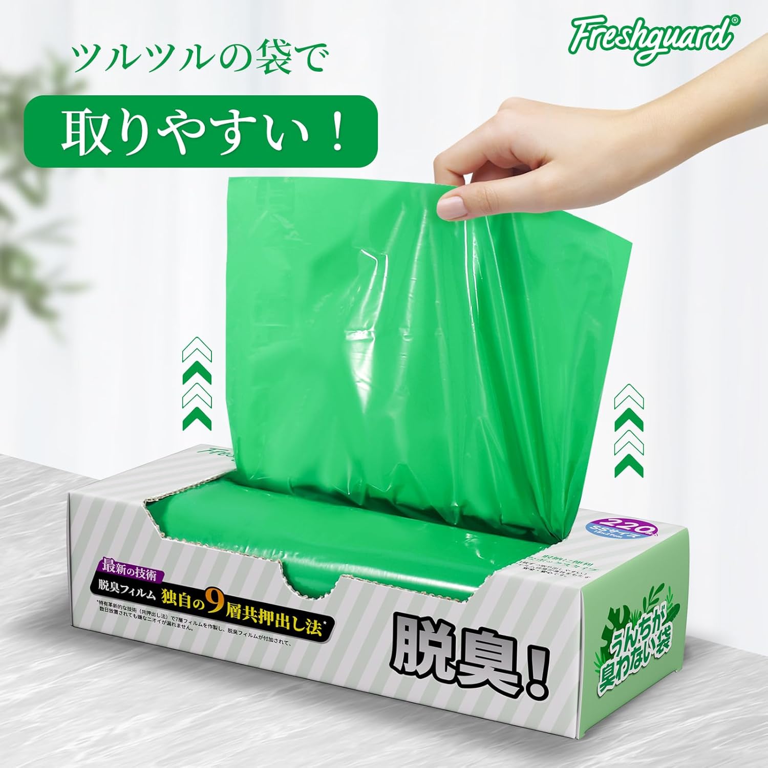 Freshguard 防臭袋 生ゴミが臭わない袋 L 90枚入 1個セット 消臭袋 生ゴミ処理袋 フィルム構造 匂わない袋 徹底消臭 車内 キッチン用品 箱型 5∼8L(グリーン、L/90枚)